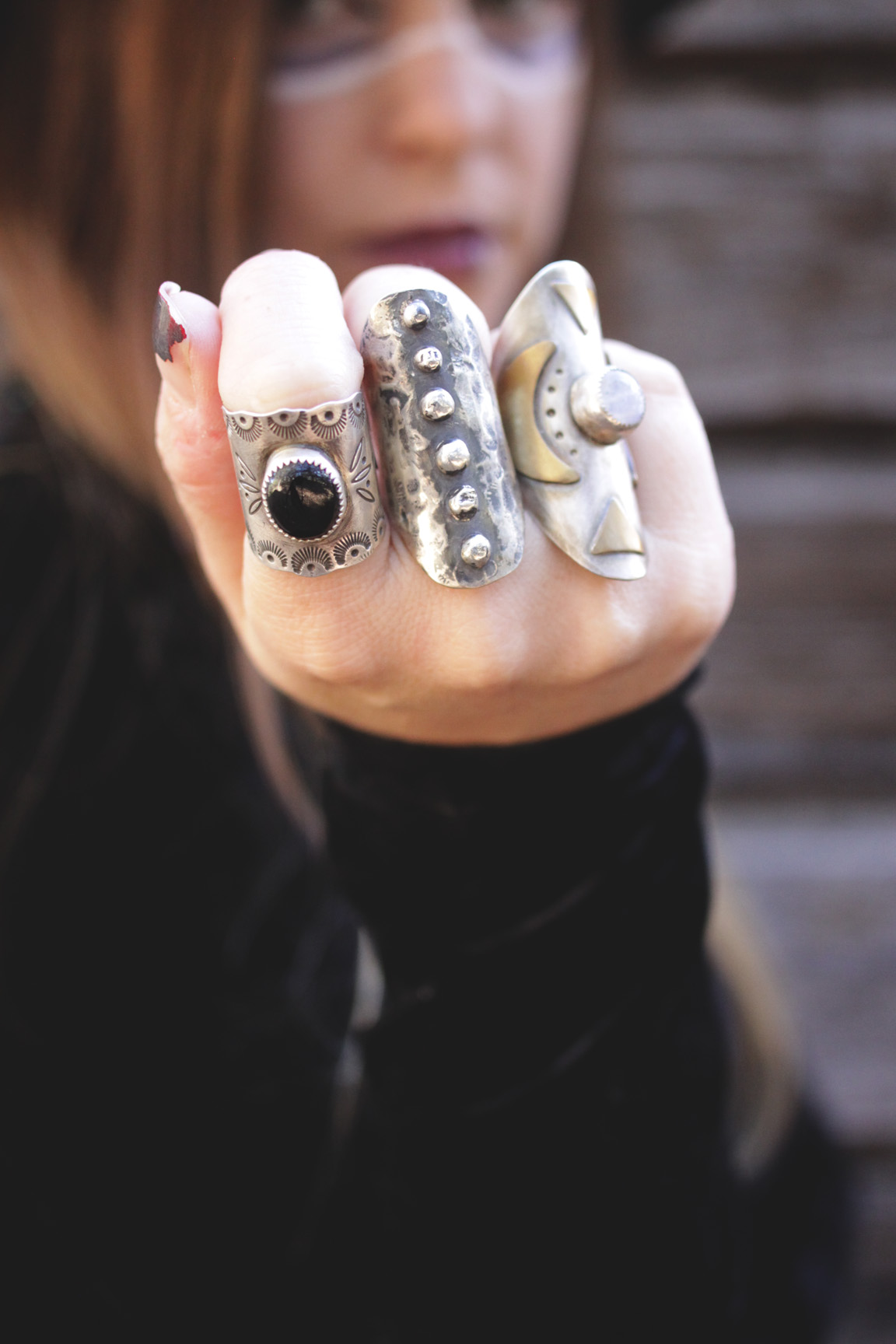 I love how beautiful my jewels from Aurora Shadow & Star Native fit in with this outfit. I almost never wear one of their work without the other. I also tend to wear my Strong Medicine Studio cuff ring and Silk Bone Jewels ring when I wear them too. I love all the silver together. They are just the PB&J of jewels. And this is two years in a row I wore both this vest from Mamie Ruth and these boots from Lulu's. Maybe I can keep it up in future years... And this bag I just got from Ladies of Paradise was so perfect. (They just launched their site and have the most rad bags, you must check them out!) If you have bought the Bohemian Collective Magazine, you might recognize the necklace and hat! They were both featured in the Made For Pearl editorial.